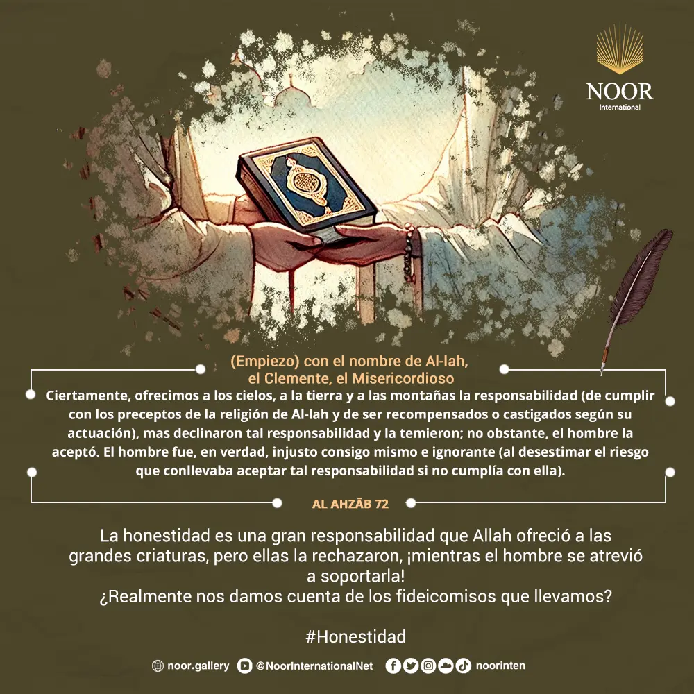 La honestidad es una gran responsabilidad que Allah ofreció a las grandes criaturas, pero ellas la rechazaron, ¡mientras el hombre se atrevió a soportarla!.