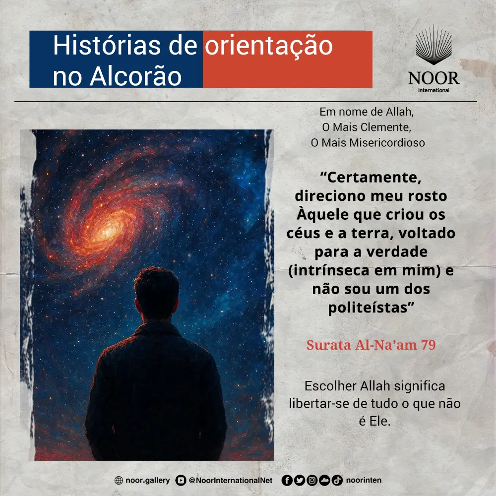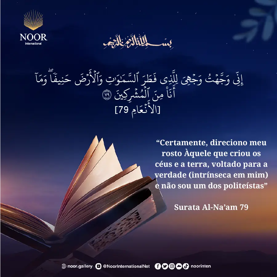 {“Certamente, direciono meu rosto Àquele que criou os céus e a terra, voltado para a verdade (intrínseca em mim) e não sou um dos politeístas”} [Alcorão 6:79]