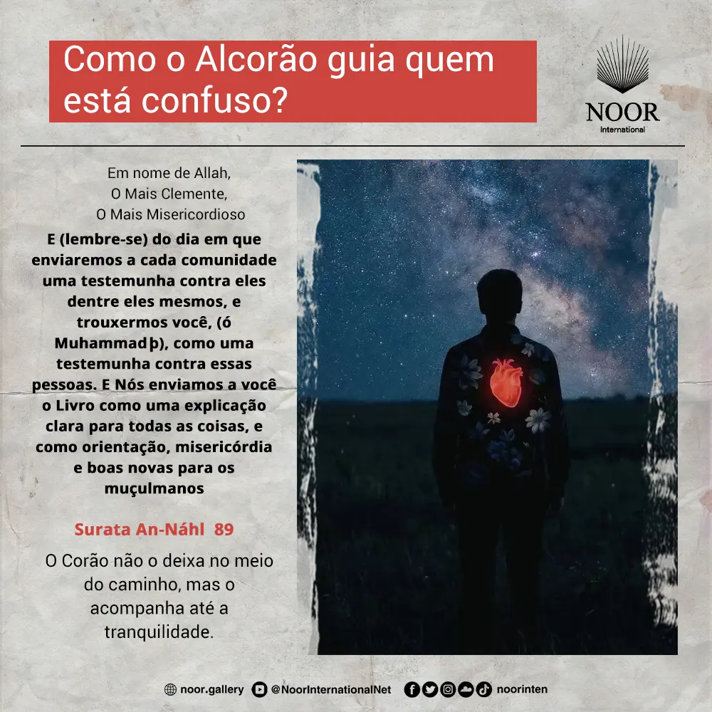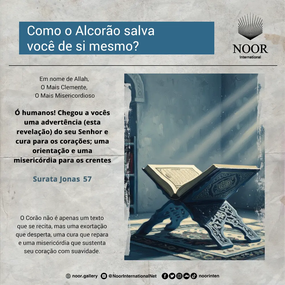 Quando o peito se aperta e você não sabe a causa da dor, o Corão vem até você não para repreendê-lo, mas para curar o que não se vê.