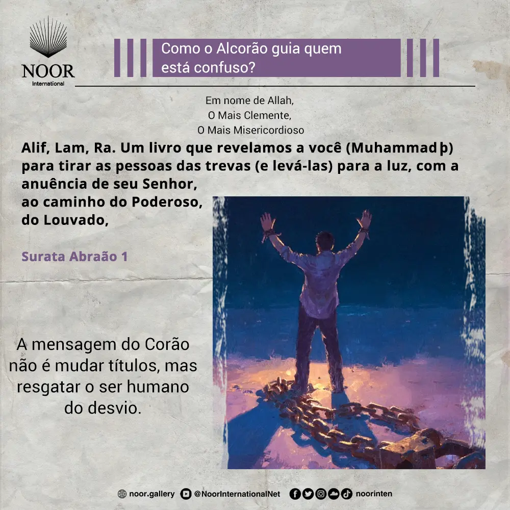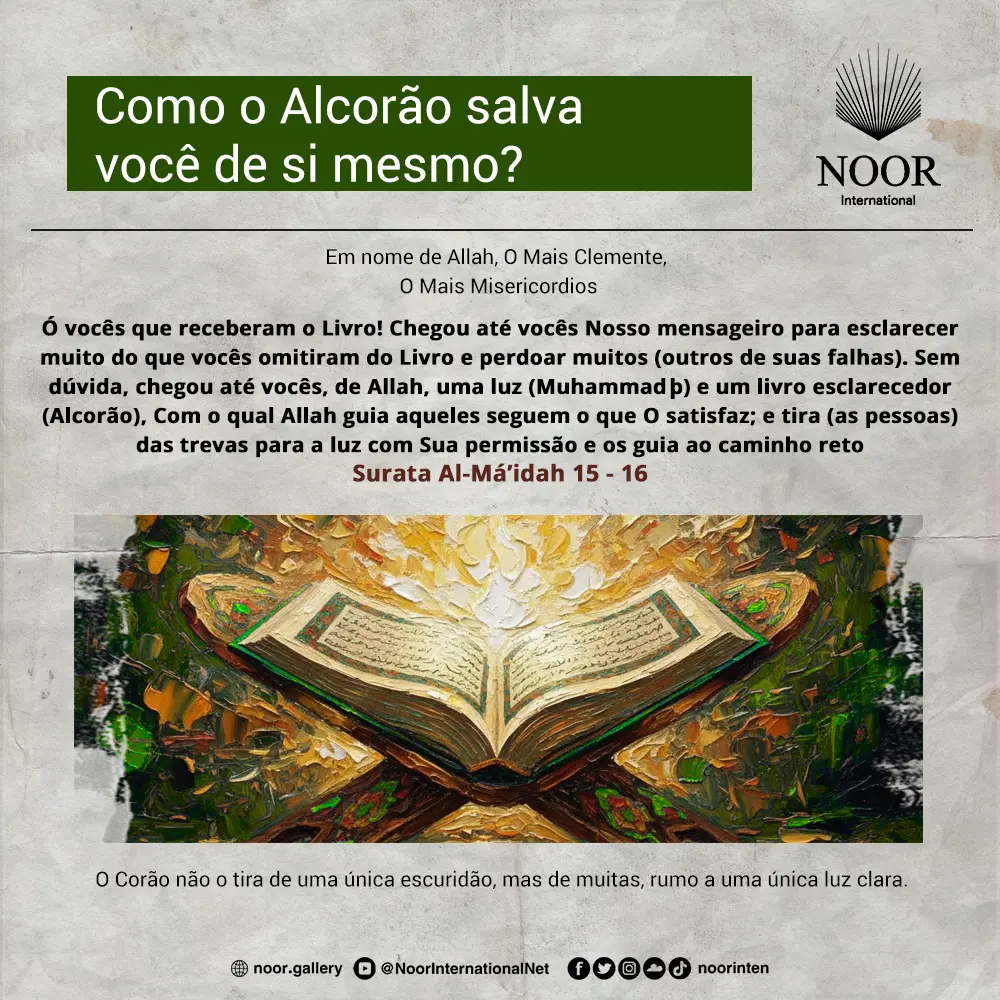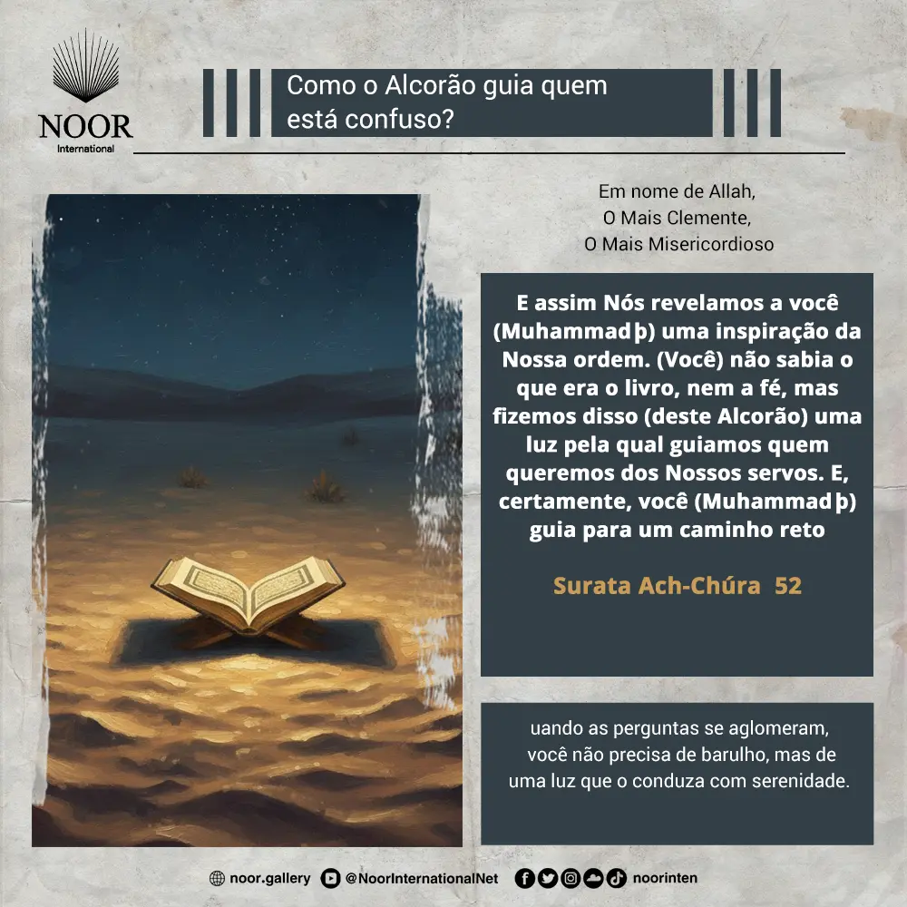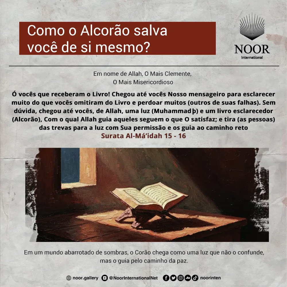 Em um mundo abarrotado de sombras, o Corão chega como uma luz que não o confunde, mas o guia pelo caminho da paz.
