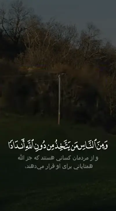 ﴿و از مردم کسانی هستند که جز الله، همتايانى برای او قرار مى دهند، و آنها را به مانند آنكه بايد الله دوست داشته باشند، دوست مى داند، و کسانی که ایمان آوردهاند، الله را بيشتر دوست دارند، و کسانی که ستم کردند، اگر مى ديدند،هنگامى كه عذاب روز قيامت را مشاهده مى كنند [خواهند دانست] که تمام قدرت از آن الله است و اينكه الله سخت کیفر است﴾.