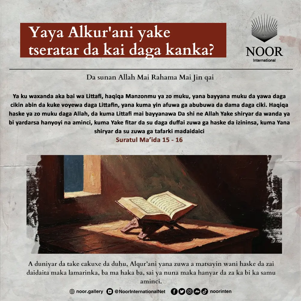 A duniyar da take cakuxe da duhu, Alqur’ani yana zuwa a matsayin wani haske da zai daidaita maka lamarinka, ba ma haka ba, sai ya nuna maka hanyar da za ka bi ka samu aminci.