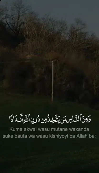 Kuma akwai wasu mutane waxanda suke bauta wa wasu kishiyoyi ba Allah ba; suna son su kamar son Allah; waxanda kuwa suka yi imani sun fi son Allah (fiye da komai). Da a ce waxanda suka yi zalunci za su ga lokacin da suke ido huxu da azaba (to da sun gane) cewa, lalle duk wani qarfi na Allah ne gaba xaya, kuma lalle Allah Mai tsananin azaba ne. [Baqara: 165]