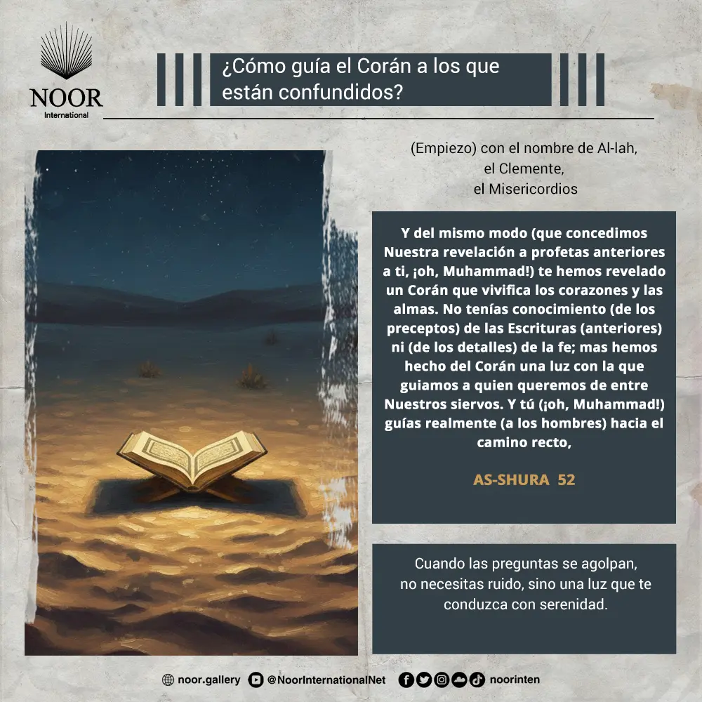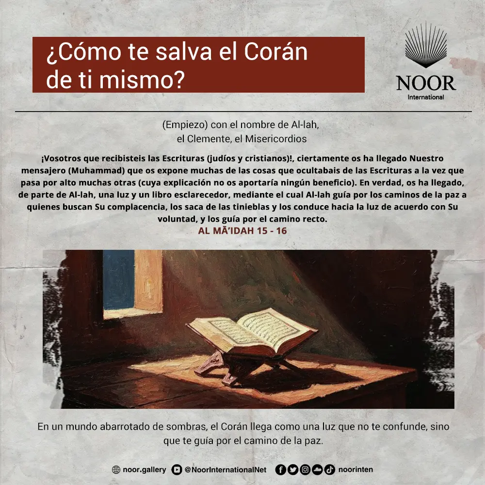 En un mundo abarrotado de sombras, el Corán llega como una luz que no te confunde, sino que te guía por el camino de la paz.