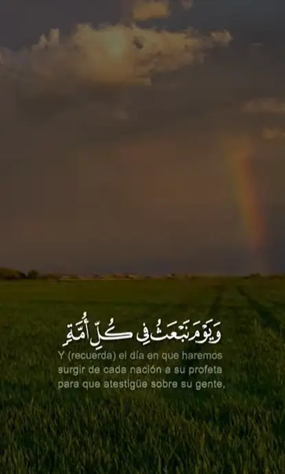 {Y (recuerda) el día en que haremos surgir de cada nación a su profeta para que atestigüe sobre su gente, y te pondremos a ti (¡oh, Muhammad!) como testigo de tu nación. Y te revelamos el Libro (el Corán) como una clara explicación de todas las cosas, como guía, misericordia y buenas noticias para quienes se someten a Él (aceptando el Islam).} [Corán 16:89]