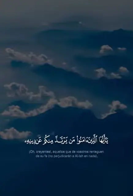{¡Oh, creyentes!, aquellos que de vosotros renieguen de su fe (no perjudicarán a Al-lah en nada), y Al-lah hará surgir a otras gentes (mejores que ellos) a quienes amará y que Lo amarán; serán humildes con los creyentes y severos con quienes rechazan la verdad; lucharán por la causa de Al-lah y no temerán ser reprochados por nadie. Tal es el favor que Al-lah concede a quien quiere; y el favor de Al-lah es inmenso y Él todo lo sabe.} [Corán 5:54]