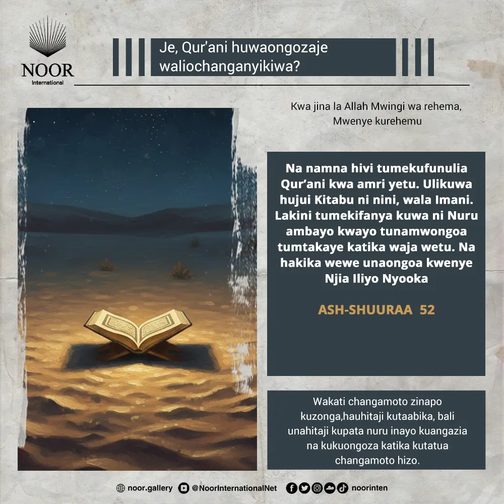 Katika ulimwengu uliofunikwa na giza, Qur’an inakuja kama nuru isiyo kutelekeza, bali inkujulisha njia yenye usalama na amani.