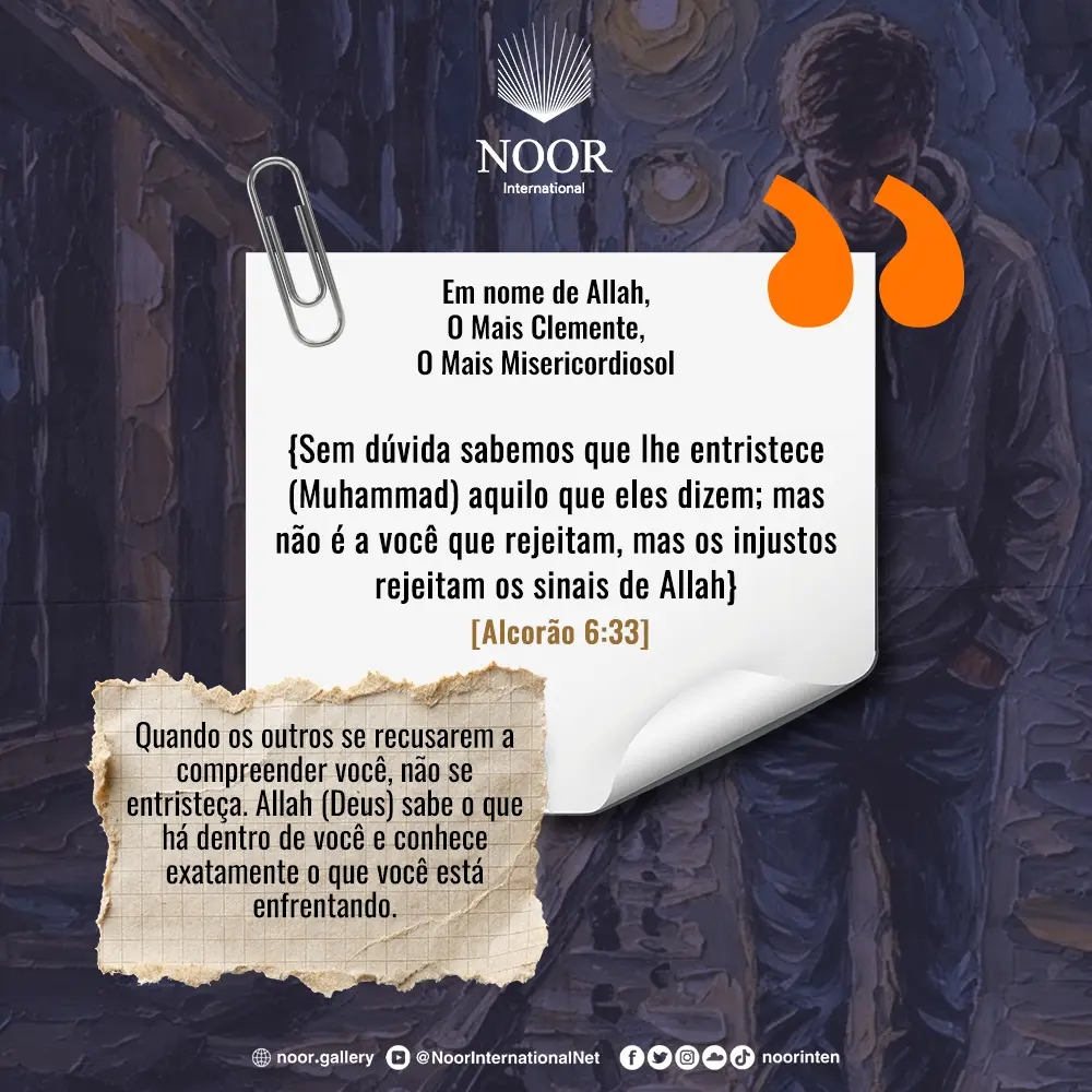 Quando os outros se recusarem a compreender você, não se entristeça. Allah (Deus) sabe o que há dentro de você e conhece exatamente o que você está enfrentando.