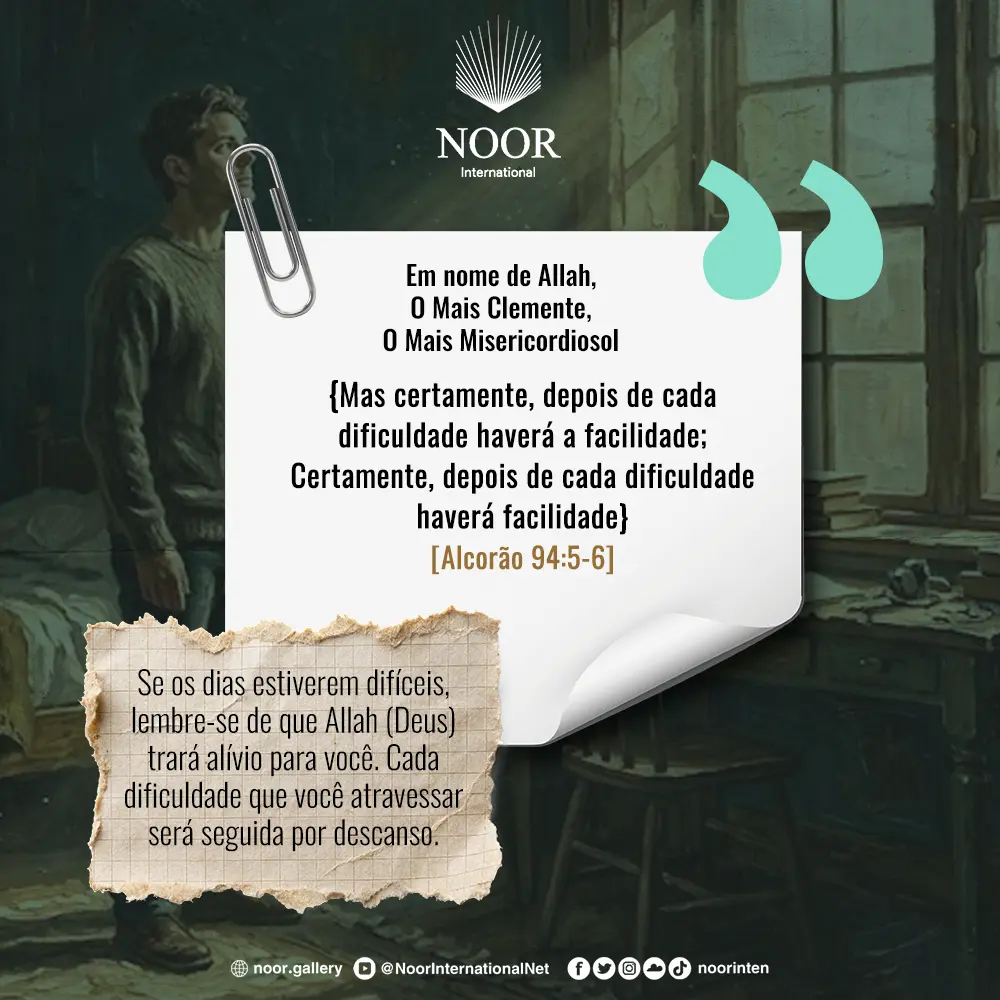 Não te entristeças nos momentos de medo, Allah está contigo e conceder-te-á serenidade e vitória.