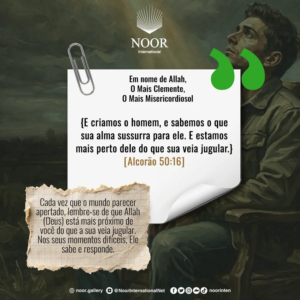 {E criamos o homem, e sabemos o que sua alma sussurra para ele. E estamos mais perto dele do que sua veia jugular.} [Alcorão 50:16]