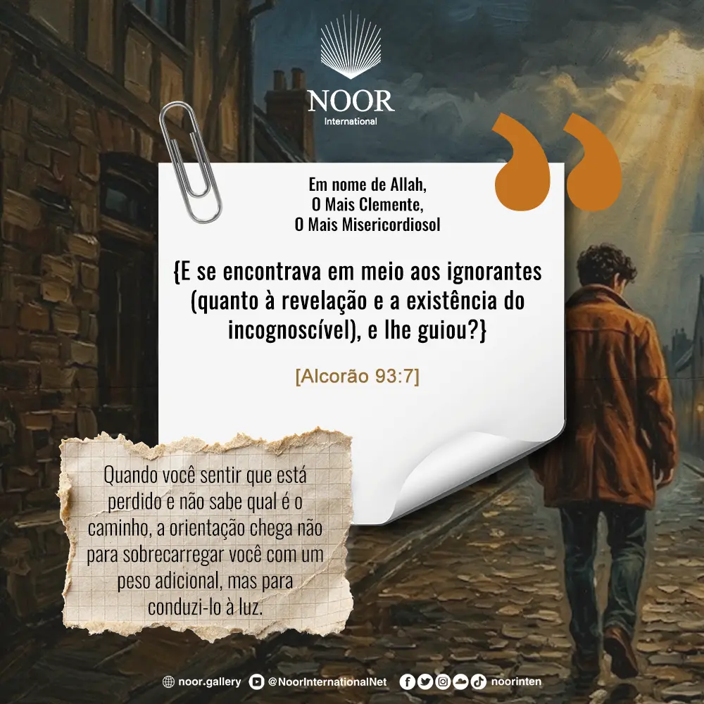 {E se encontrava em meio aos ignorantes (quanto à revelação e a existência do incognoscível), e lhe guiou?} [Alcorão 93:7]