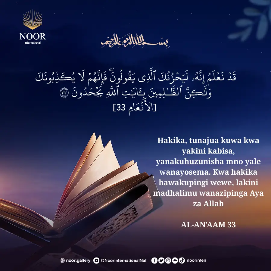 Watu wanapo kudharau au kuipinga haki, kumbuka kuwa Allah anaijua hiyo huzuni yako, usihuzunike kusimama imara katika nyakati nzito, tambua kuwa Allah anajua yaliyomo ndani ya moyo wako.