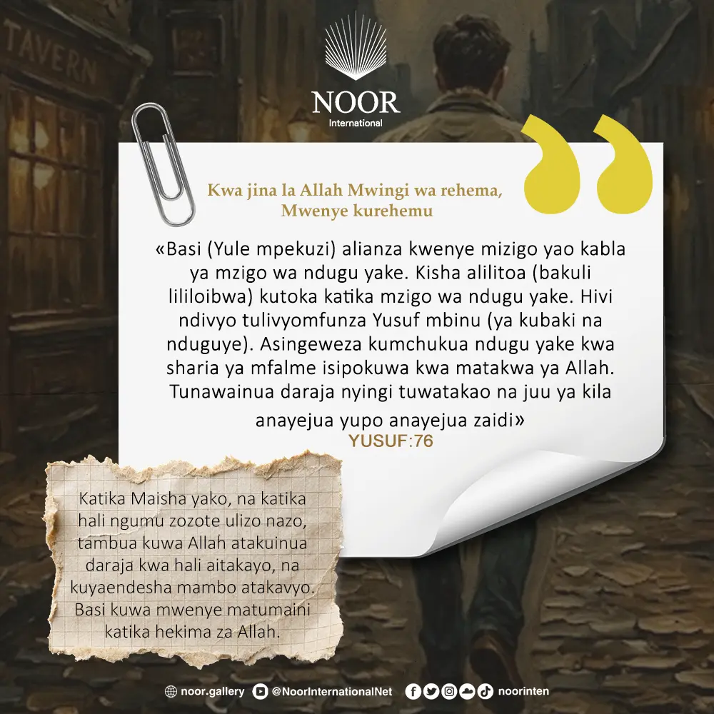Katika Maisha yako, na katika hali ngumu zozote ulizo nazo, tambua kuwa Allah atakuinua daraja kwa hali aitakayo, na kuyaendesha mambo atakavyo.