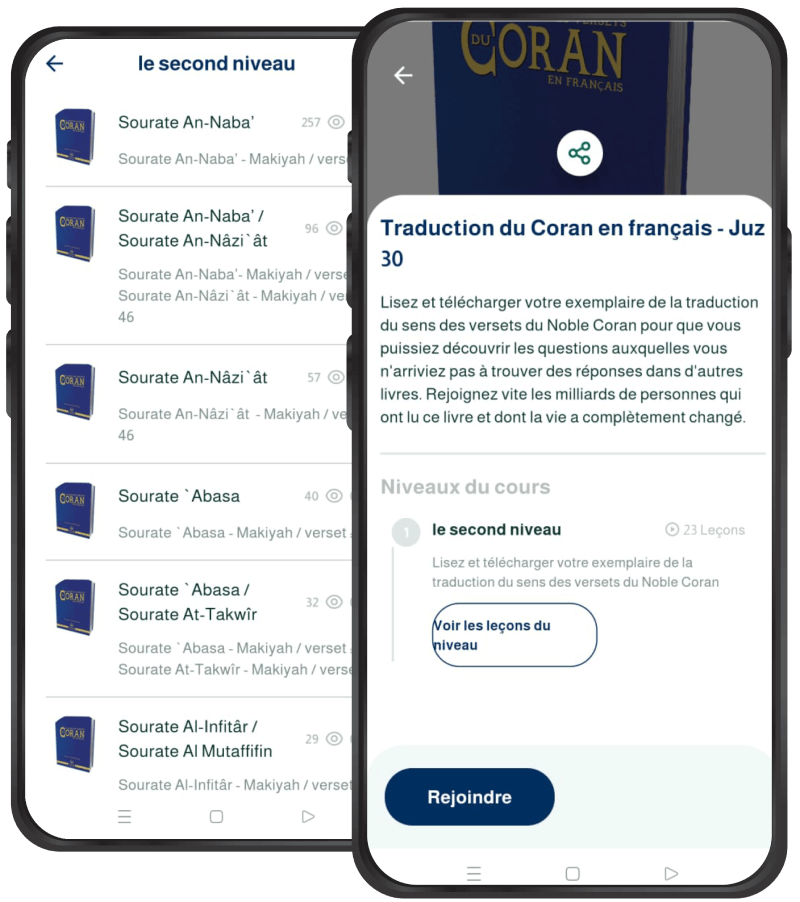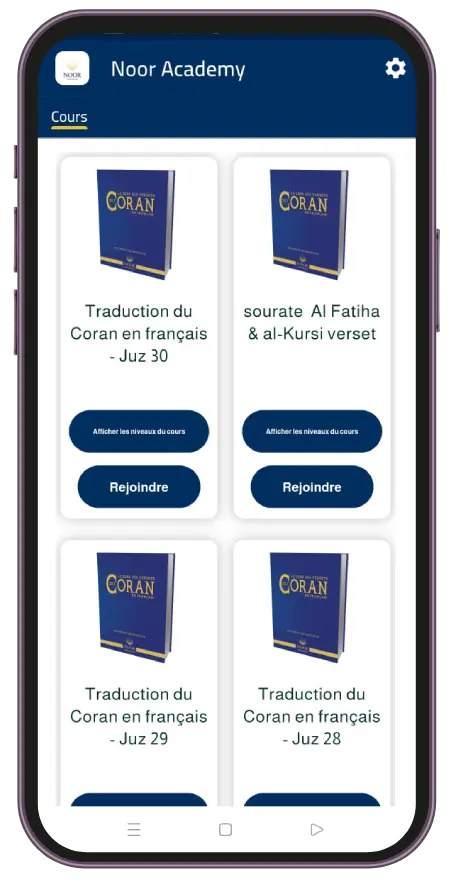 Découvrez la méthode la plus efficace pour apprendre le Coran et sa traduction avec Noor Academy, basée sur le système éducatif complet Utrujja. Cette application propose des cours complets pour maîtriser la récitation du Coran, le Tajwid, et comprendre les traductions du Coran dans plusieurs langues, en faisant le choix idéal pour les musulmans du monde entier. Que vous soyez débutant ou apprenant avancé, Noor Academy vous offre tout ce dont vous avez besoin pour approfondir votre connaissance du Coran.