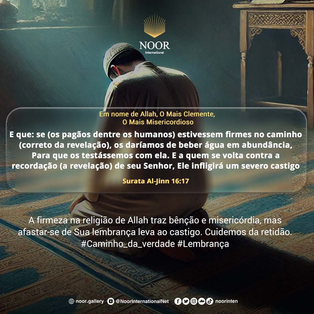 "A firmeza na religião de Allah traz bênção e misericórdia, mas afastar-se de Sua lembrança leva ao castigo. Cuidemos da retidão.