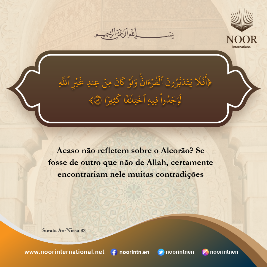 Acaso não refletem sobre o Alcorão? Se fosse de outro que não de Allah, certamente encontrariam nele muitas contradições