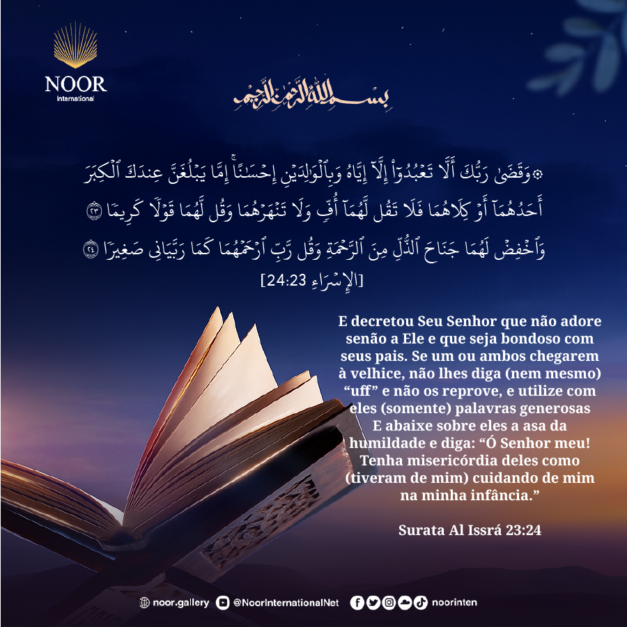 E abaixe sobre eles a asa da humildade e diga: “Ó Senhor meu! Tenha misericórdia deles como (tiveram de mim) cuidando de mim na minha infância.”