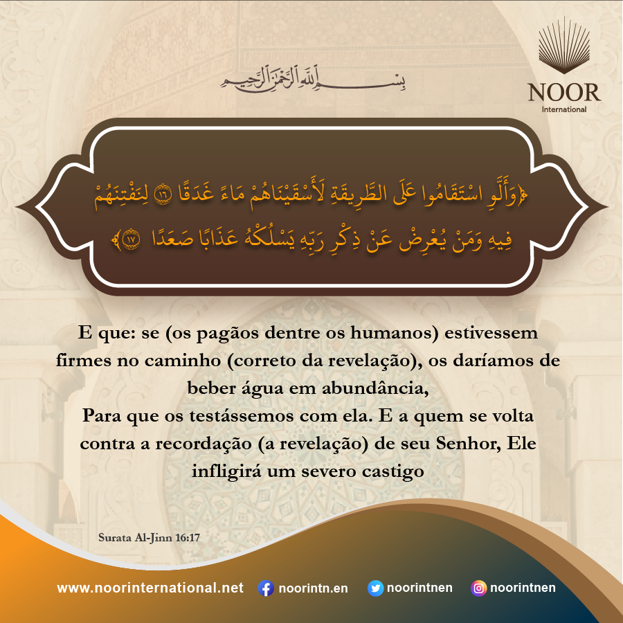E que: se (os pagãos dentre os humanos) estivessem firmes no caminho (correto da revelação), os daríamos de beber água em abundância
