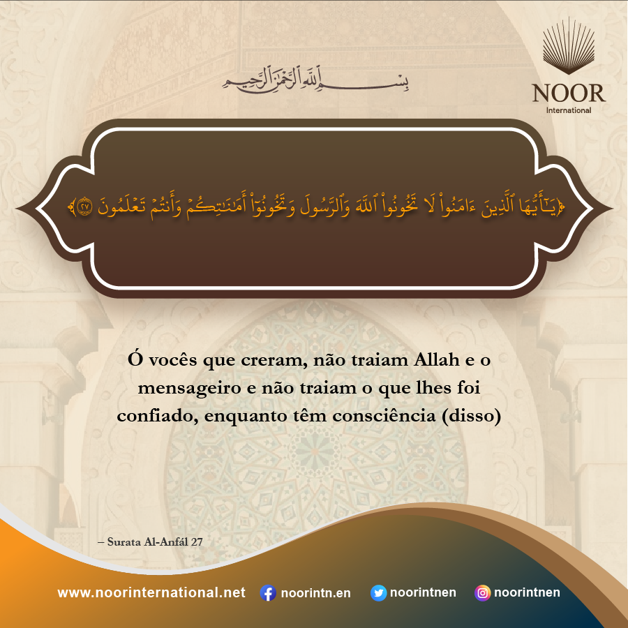 ​​Ó vocês que creram, não traiam Allah e o mensageiro e não traiam"