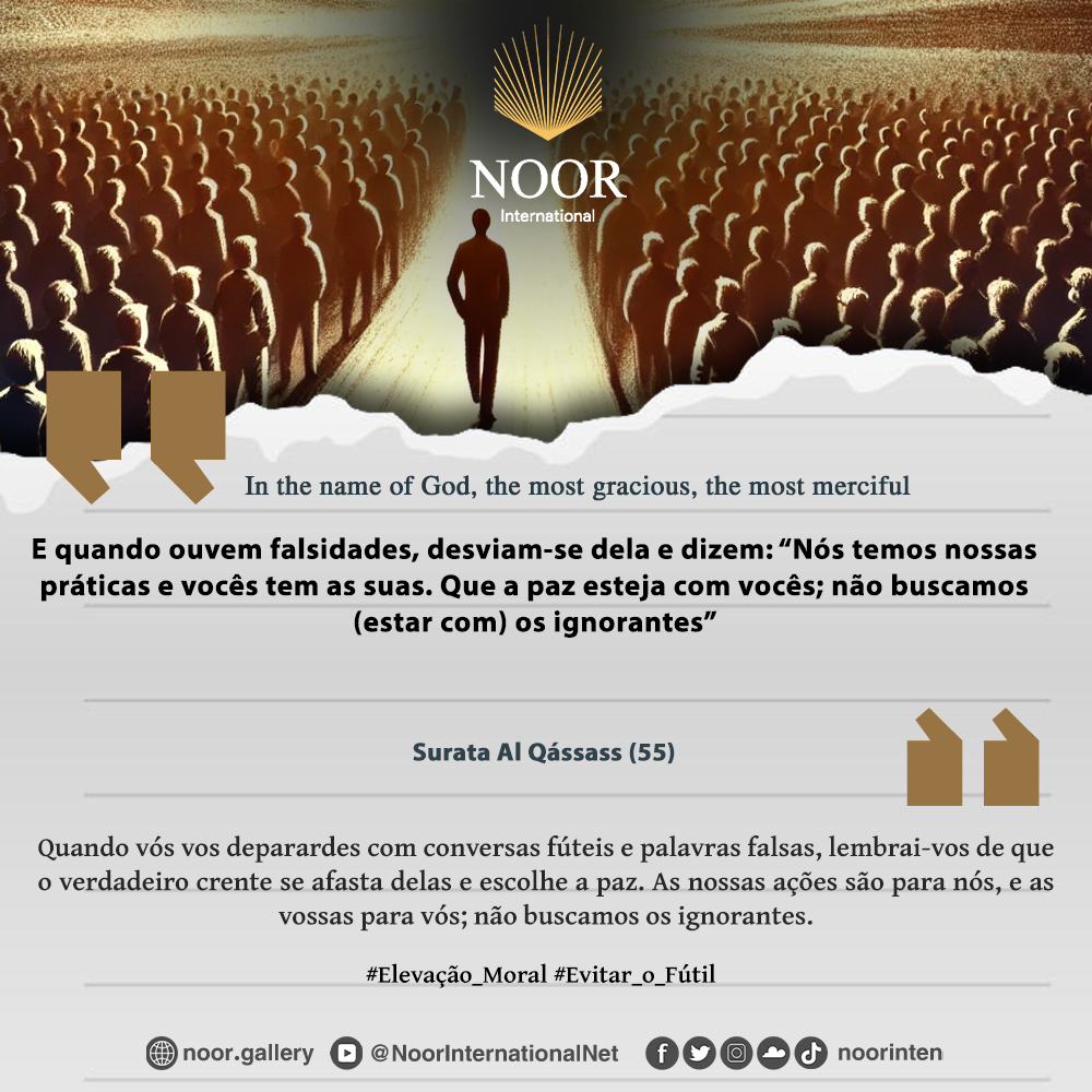 "Quando vós vos deparardes com conversas fúteis e palavras falsas, lembrai-vos de que o verdadeiro crente se afasta delas e escolhe a paz. As nossas ações são para nós, e as vossas para vós; não buscamos os ignorantes." #Elevação_Moral #Evitar_o_Fútil