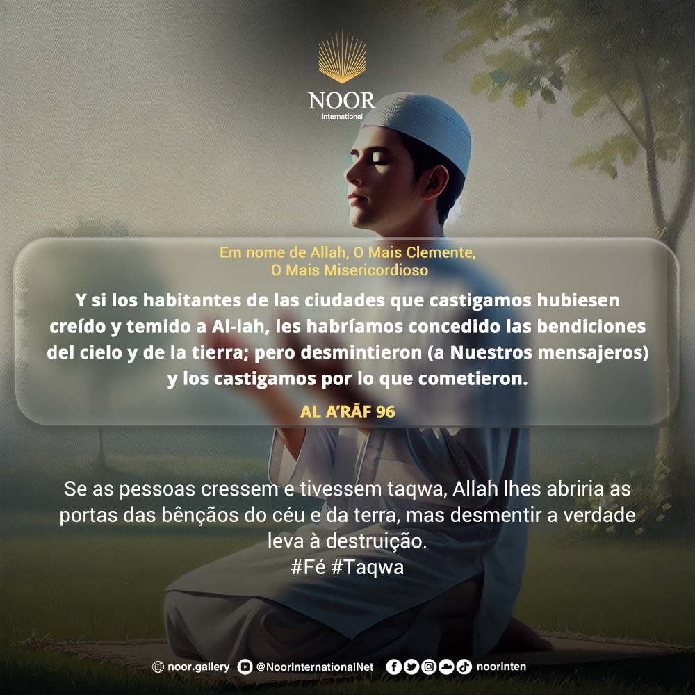 Se as pessoas cressem e tivessem taqwa, Allah lhes abriria as portas das bênçãos do céu e da terra, mas desmentir a verdade leva à destruição.