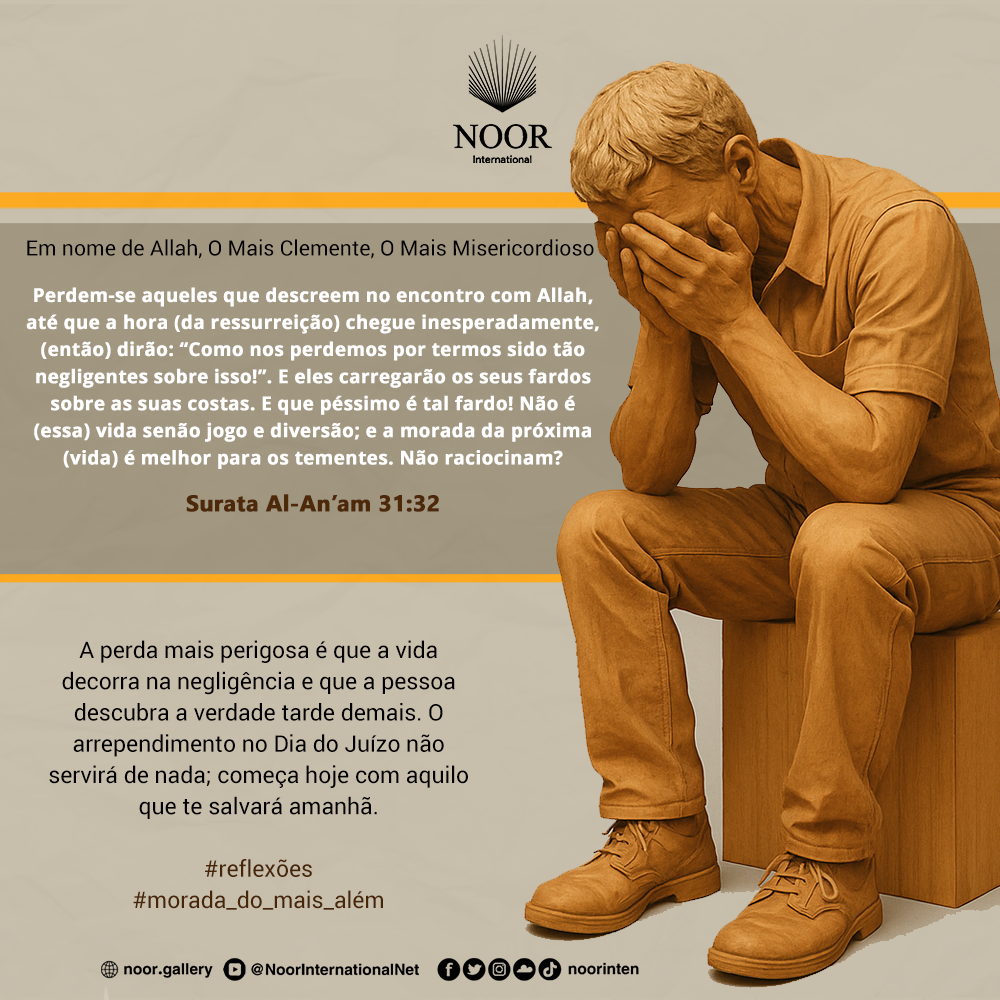 A perda mais perigosa é que a vida decorra na negligência e que a pessoa descubra a verdade tarde demais. O arrependimento no Dia do Juízo não servirá de nada; começa hoje com aquilo que te salvará amanhã. #reflexões #morada_do_mais_além