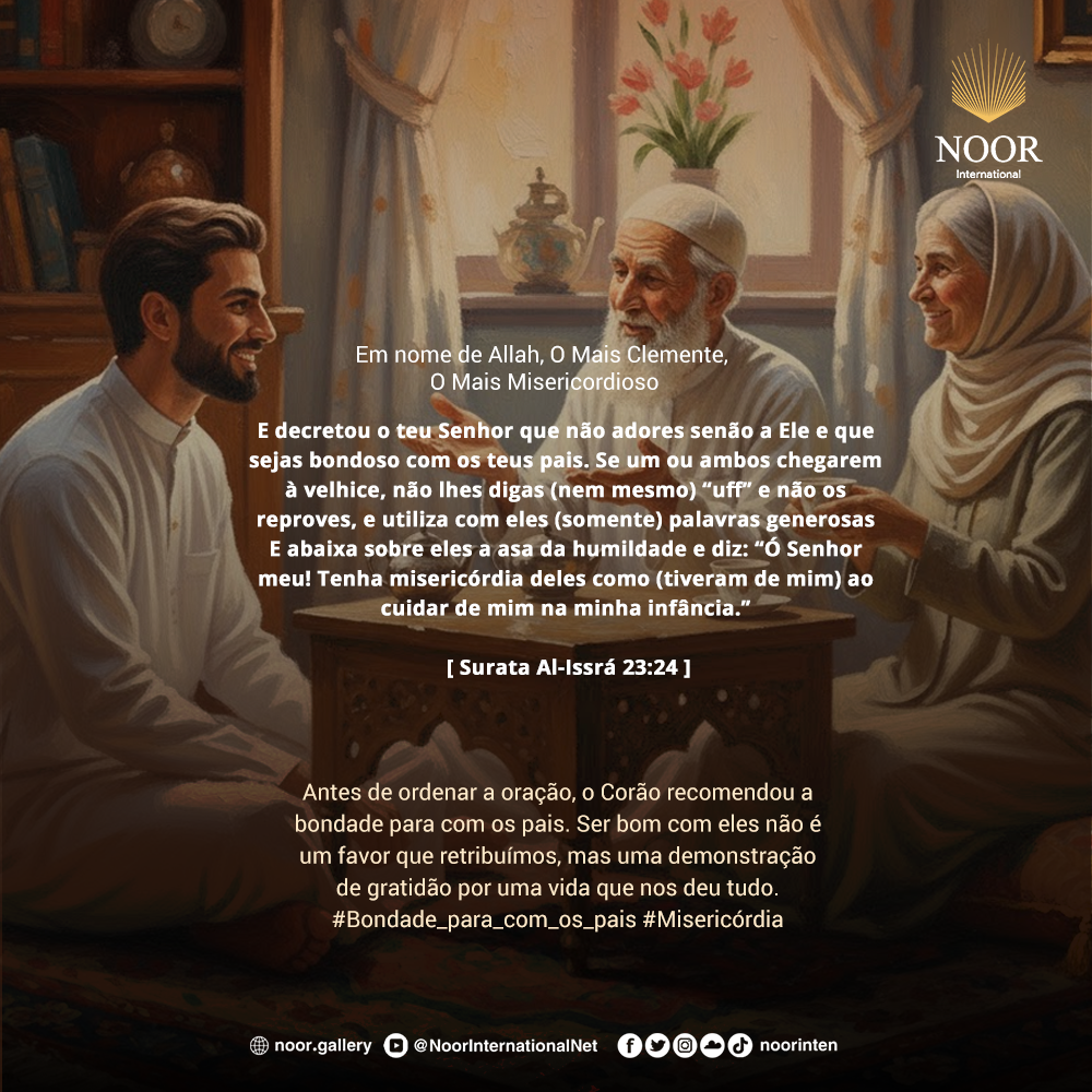 Antes de ordenar a oração, o Corão recomendou a bondade para com os pais. Ser bom com eles não é um favor que retribuímos, mas uma demonstração de gratidão por uma vida que nos deu tudo. #Bondade_para_com_os_pais #Misericórdia