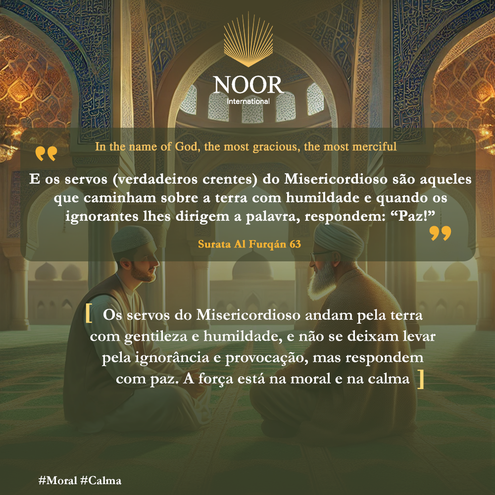 "Os servos do Misericordioso andam pela terra com gentileza e humildade, e não se deixam levar pela ignorância e provocação, mas respondem com paz. A força está na moral e na calma." #Moral #Calma