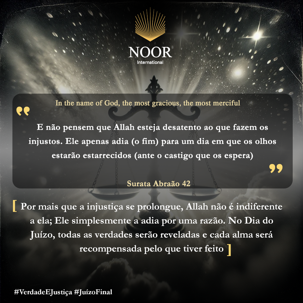 "Por mais que a injustiça se prolongue, Allah não é indiferente a ela; Ele simplesmente a adia por uma razão. No Dia do Juízo, todas as verdades serão reveladas e cada alma será recompensada pelo que tiver feito." #VerdadeEJustiça #JuízoFinal
