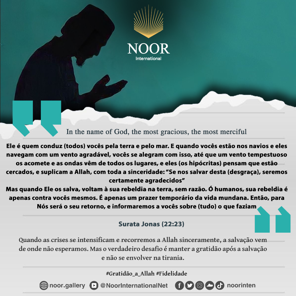 Quando as crises se intensificam e recorremos a Allah sinceramente, a salvação vem de onde não esperamos. Mas o verdadeiro desafio é manter a gratidão após a salvação e não se envolver na tirania." #Gratidão_a_Allah #Fidelidade