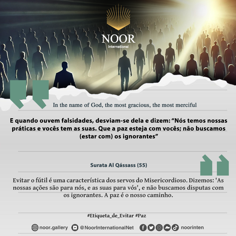 "Quando vós vos deparardes com conversas fúteis e palavras falsas, lembrai-vos de que o verdadeiro crente se afasta delas e escolhe a paz. As nossas ações são para nós, e as vossas para vós; não buscamos os ignorantes." #Elevação_Moral #Evitar_o_Fútil
