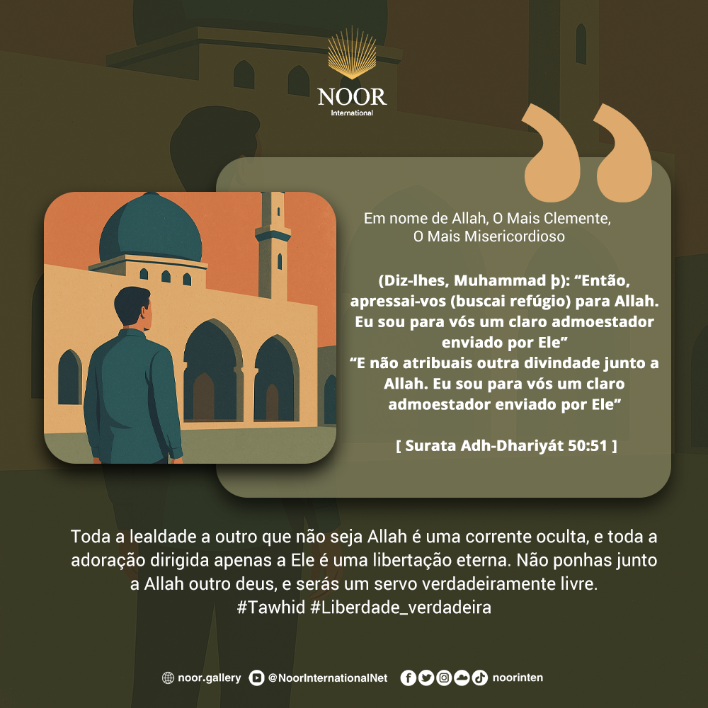 Toda a lealdade a outro que não seja Allah é uma corrente oculta, e toda a adoração dirigida apenas a Ele é uma libertação eterna. Não ponhas junto a Allah outro deus, e serás um servo verdadeiramente livre. #Tawhid #Liberdade_verdadeira