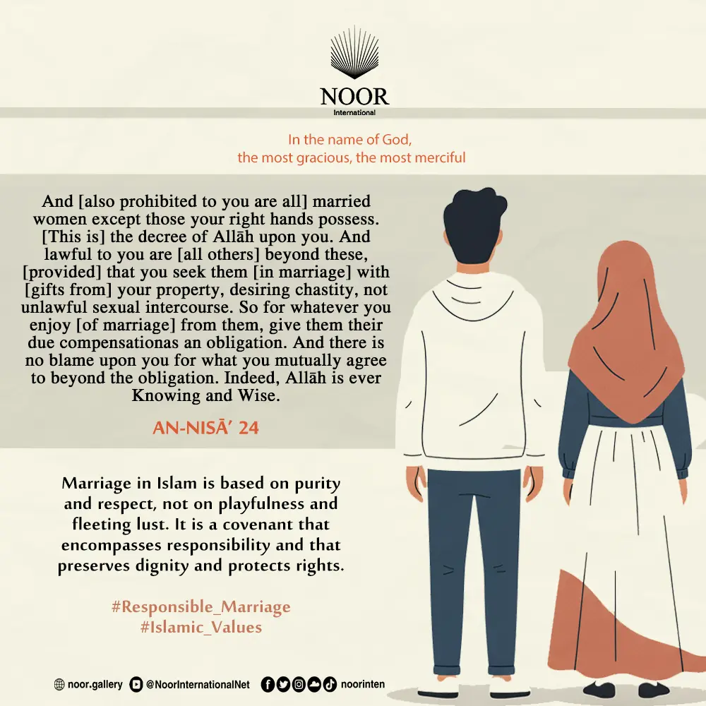 Marriage in Islam is based on purity and respect, not on playfulness and fleeting lust. It is a covenant that encompasses responsibility and that preserves dignity and protects rights.