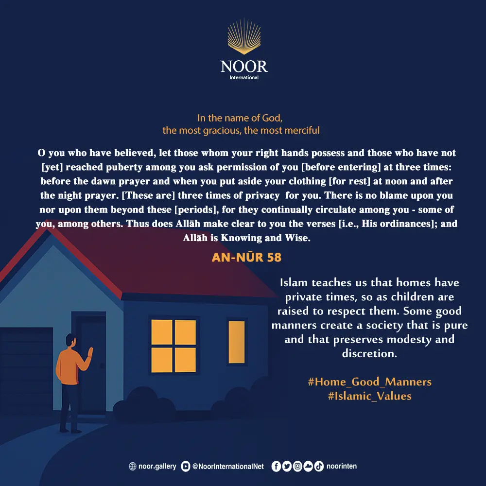 Islam teaches us that homes have private times, so as children are raised to respect them. Some good manners create a society that is pure and that preserves modesty and discretion.