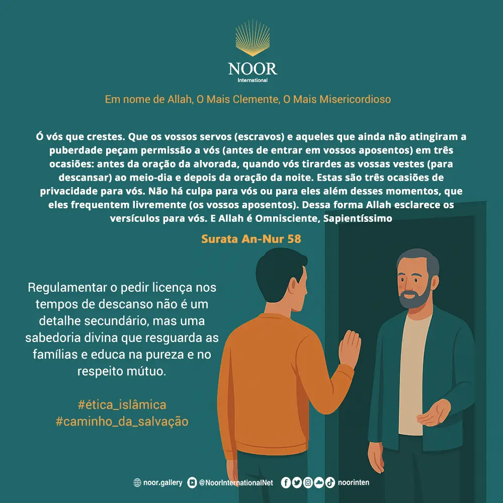 Ó vós que credes, não entreis em casas que não sejam as vossas sem pedir permissão e sem saudar os seus habitantes. Isso é o melhor para vós, para que reflitam