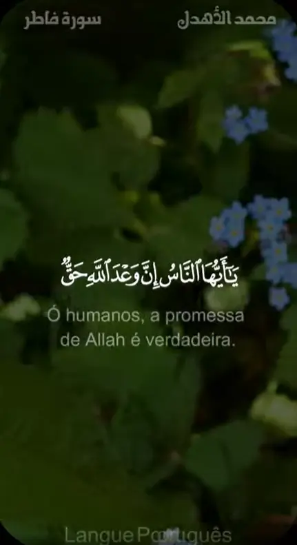 Ó humanos, a promessa de Allah é verdadeira. Não permitam que a vida mundana vos iluda, nem que o enganador (o satanás) vos engane a respeito de Allah