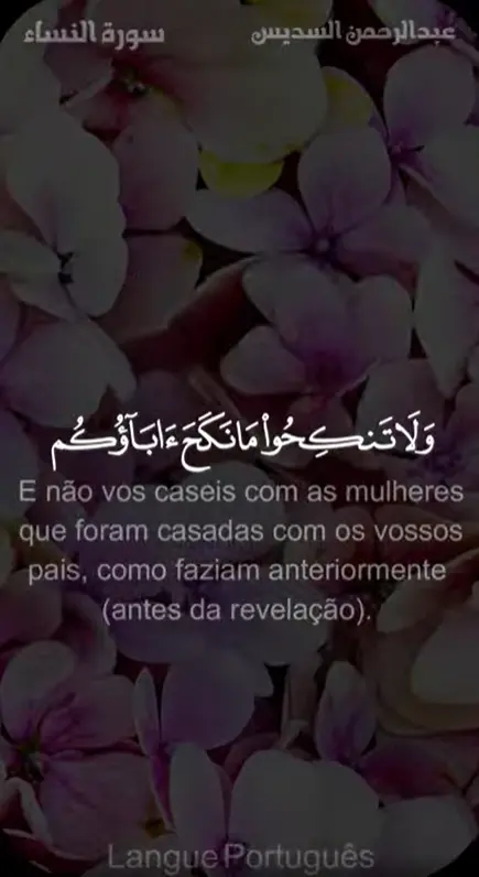 É-vos proibido desposarem as vossas mães[1], as vossas filhas[2], as vossas irmãs, as vossas tias paternas, as vossas tias maternas, as filhas do vosso irmão e as filhas da vossa irmã, as vossas mães de leite, as vossas irmãs de leite, as mães das vossas esposas, as vossas enteadas que estejam sob vossa responsabilidade, (as filhas) das vossas esposas com quem tivestes relações sexuais; mas se não tivestes relações sexuais com elas, não há pecado em (casar-se com elas). E (é também proibido que vos caseis com) as (ex-) esposas dos vossos filhos, e casar-se com as duas irmãs (ao mesmo tempo), como faziam antes (desta revelação). Certamente, Allah é Perdoador, Misericordioso (para com os crentes no Dia do Juízo final)
