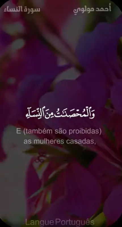 E (também são proibidas) as mulheres casadas, exceto as (mulheres) que as suas mãos direitas possuem[1]. Assim foi prescrito (como obrigação) para vós por Allah. E são lícitas para vós quaisquer outras (mulheres) que busqueis, com os vossos bens, tomá-las em matrimónio, não em fornicação. Portanto, aquelas com as quais vós vos deleitardes (em matrimónio), dai-lhes os seus dotes[2] obrigatoriamente; e não há pecado em entrarem em acordo depois da obrigação estipulada[3]. Certamente, Allah sempre foi Conhecedor, Sapientíssimo