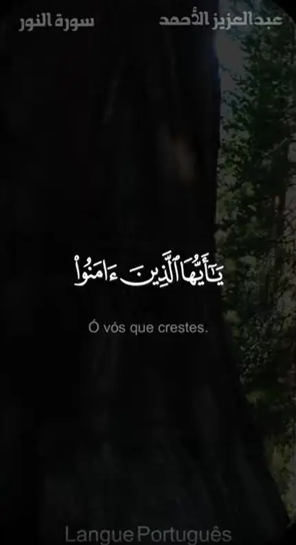 Ó vós que crestes. Que os vossos servos (escravos) e aqueles que ainda não atingiram a puberdade peçam permissão a vós (antes de entrar em vossos aposentos) em três ocasiões: antes da oração da alvorada, quando vós tirardes as vossas vestes (para descansar) ao meio-dia e depois da oração da noite[1]. Estas são três ocasiões de privacidade para vós. Não há culpa para vós ou para eles além desses momentos, que eles frequentem livremente (os vossos aposentos). Dessa forma Allah esclarece os versículos para vós. E Allah é Omnisciente, Sapientíssimo