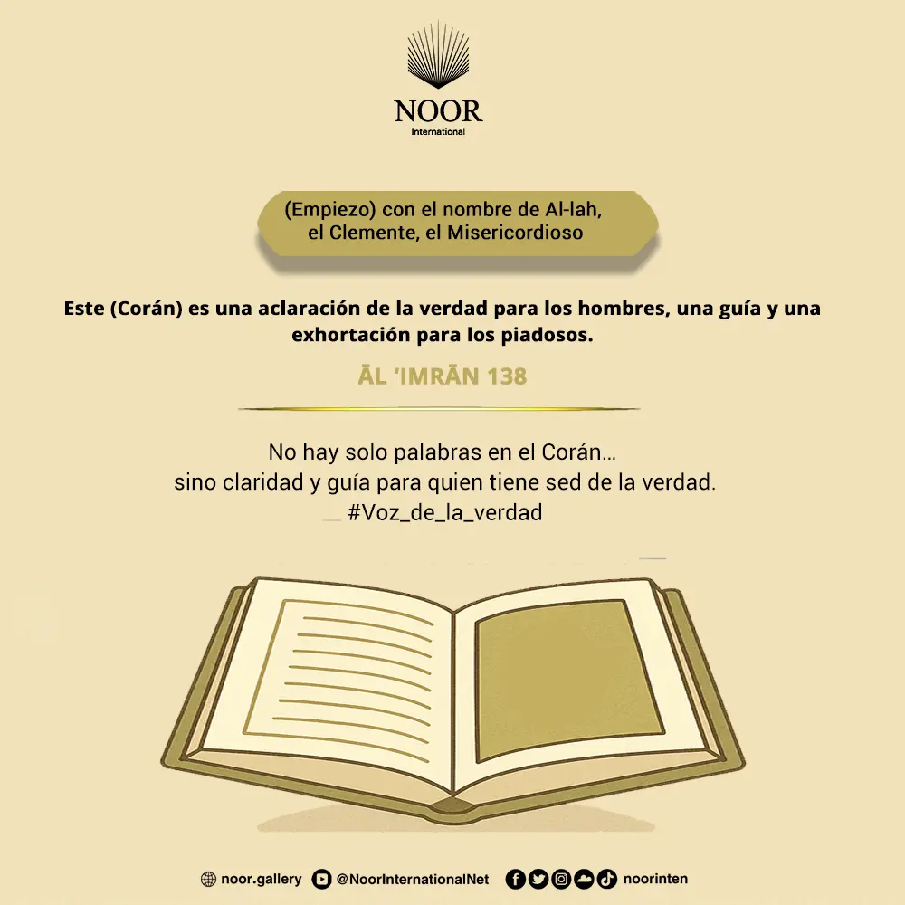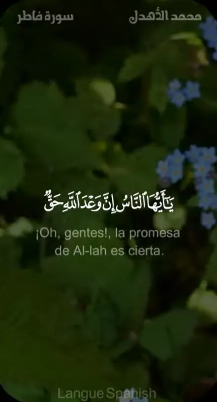 Oh, gentes!, l promesa de Al-lah es cierta. No os dejéis seducir por la vida mundanal ni por el seductor (del Demonio porque os apartaríais del camino de Al-lah).Ciertamente, el Demonio es un enemigo vuestro; tomadlo, pues, como el enemigo que es. Él invita a quienes lo siguen a ser de los habitantes del fuego abrasador.