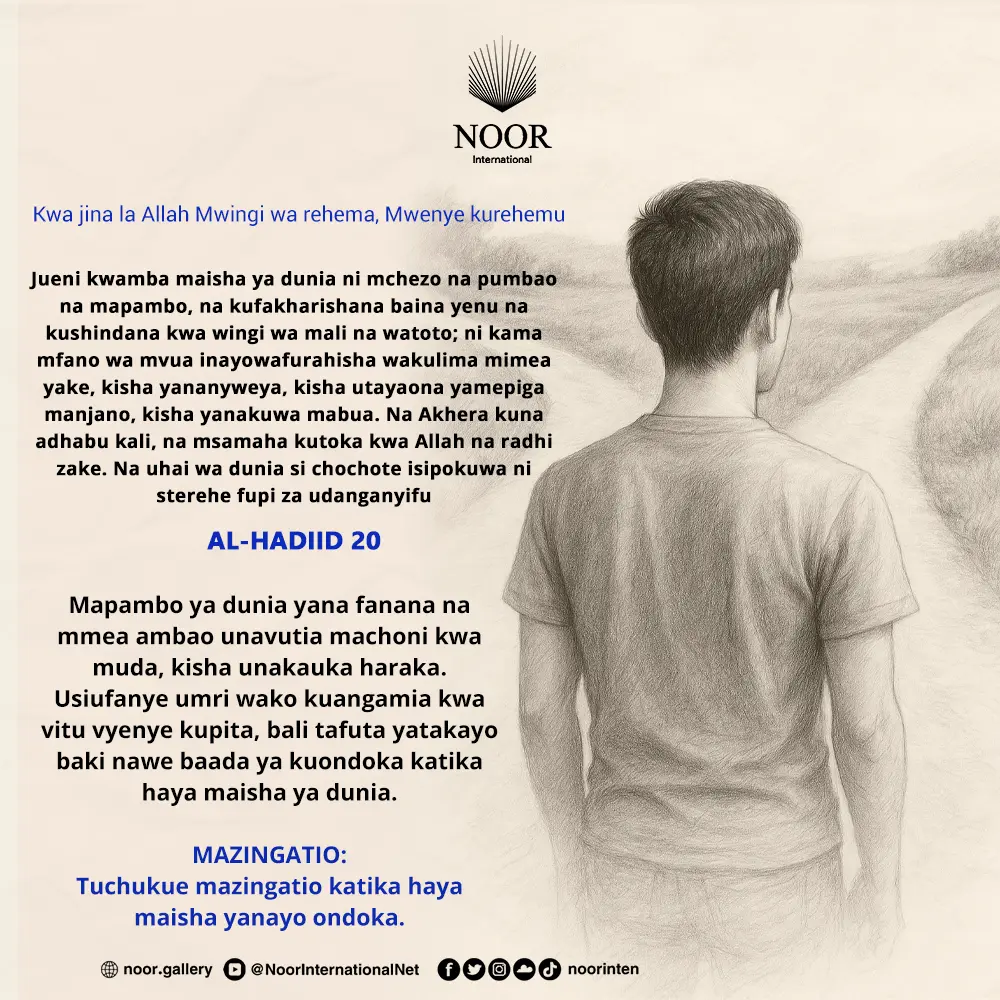 Kumbuka kuwa udanganyifu mkubwa upo katika kushughulishwa na vitu vya muda mfupi na kujisahau kushughulishwa na vitu vya kudum milele!
