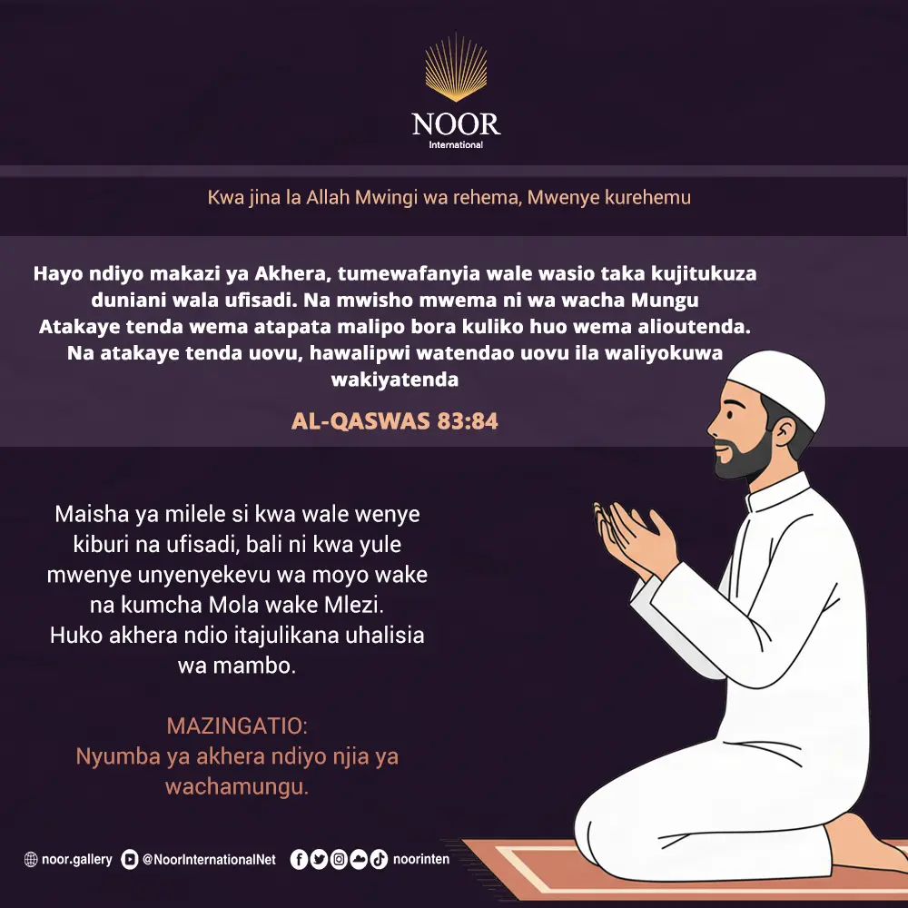 Maisha ya milele si kwa wale wenye kiburi na ufisadi, bali ni kwa yule mwenye unyenyekevu wa moyo wake na kumcha Mola wake Mlezi.