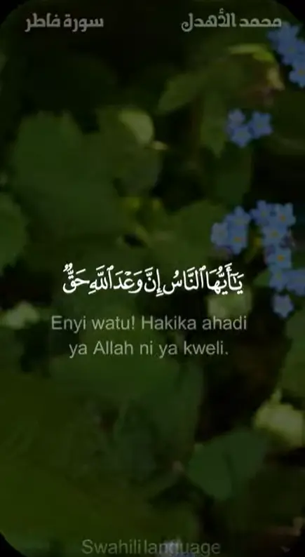 Enyi watu! Hakika ahadi ya Allah ni ya kweli. Basi yasiku-danganyeni maisha ya dunia, wala mdanganyifu asikudanganyeni juu ya Allah