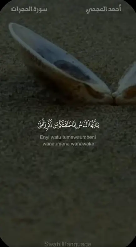 Enyi watu tumewaumbeni wanaume na wanawake na tumewafanyeni mataifa na makabila ili mutambuane hakika mbora zaidi wenu kwa Allah ni zi mno mwenye mcha Mungu zaidi kwenu hakika Allah ni mjuhabari nyingi
