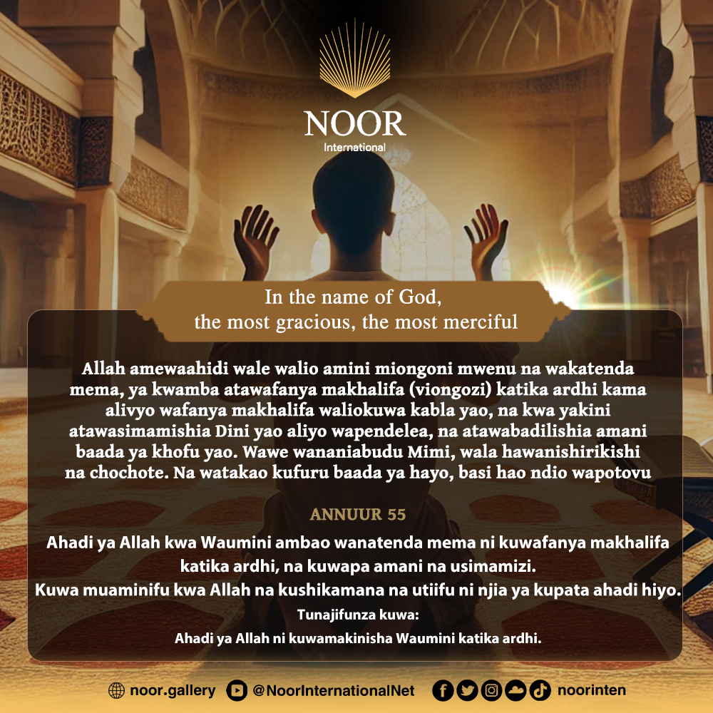 Ahadi ya Allah kwa Waumini ambao wanatenda mema ni kuwafanya makhalifa katika ardhi, na kuwapa amani na usimamizi.