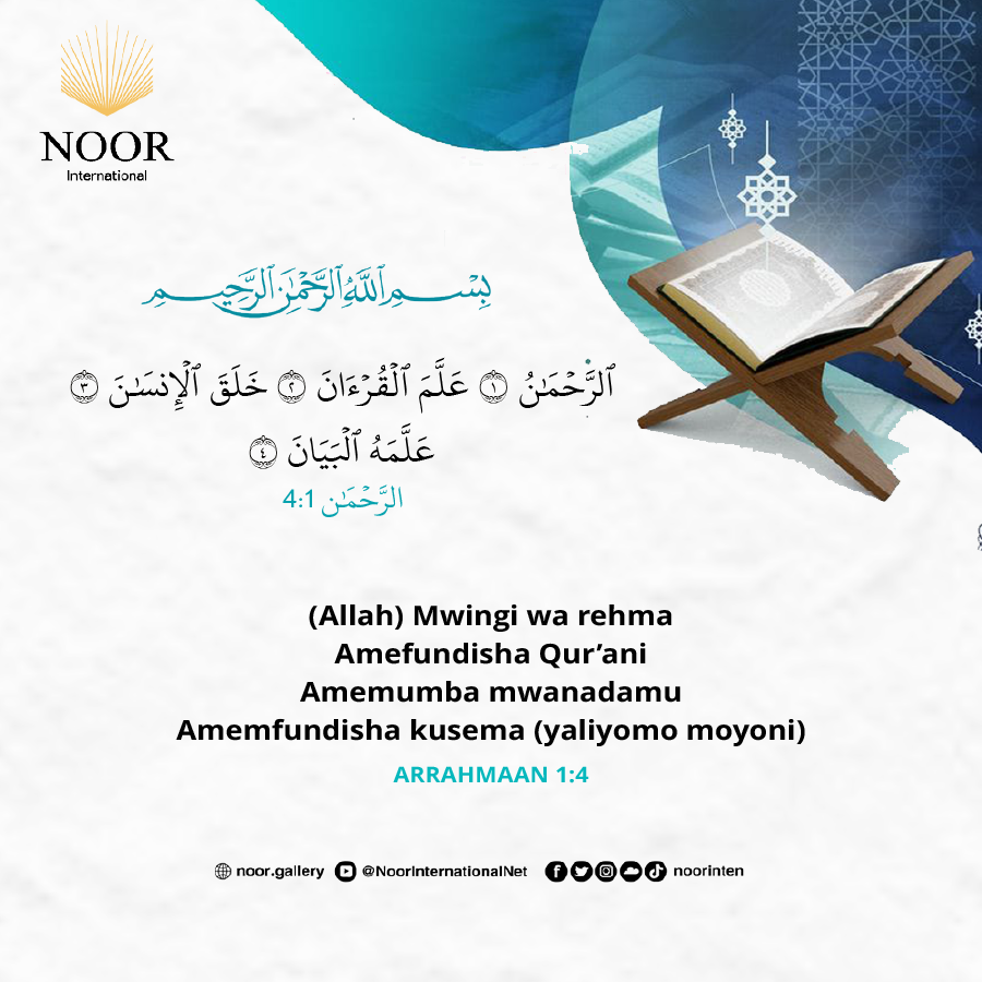 Allah ndiye aliye muumba mwanaadam. Naye ndiye aliye mfundisha namna ya kujieleza na kuwasiliana. Je, tunazitumia neema za elimu ya ubainifu tulio pewa katika mambo yanayo mridhisha Yeye? MAZINGATIO: Ni wajibu kuikumbuka neema ya ubainifu tuliyo pewa na Allah katika mambo anayo yaridhia