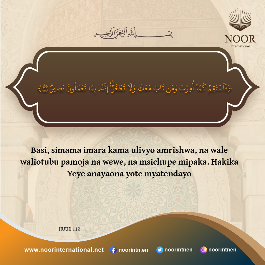 Basi, simama imara kama ulivyo amrishwa, na wale waliotubu pamoja na wewe, na msichupe mipaka. Hakika Yeye anayaona yote myatendayo