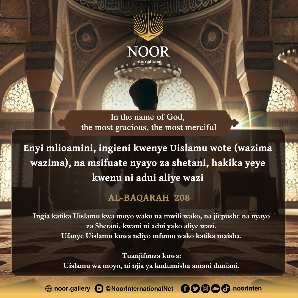 Ingia katika Uislamu kwa moyo wako na mwili wako, na jiepushe na nyayo za Shetani, kwani ni adui yako aliye wazi.