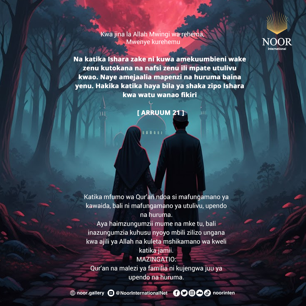 Katika mfumo wa Qur’an ndoa si mafungamano ya kawaida, bali ni mafungamano ya utulivu, upendo na huruma.