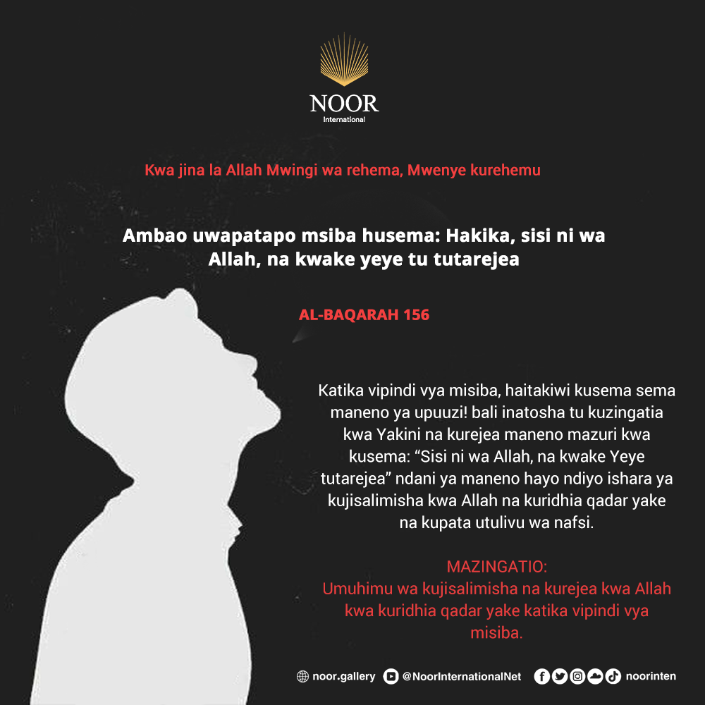 Katika vipindi vya misiba, haitakiwi kusema sema maneno ya upuuzi! bali inatosha tu kuzingatia kwa Yakini na kurejea maneno mazuri kwa kusema: “Sisi ni wa Allah, na kwake Yeye tutarejea” ndani ya maneno hayo ndiyo ishara ya kujisalimisha kwa Allah na kuridhia qadar yake na kupata utulivu wa nafsi.